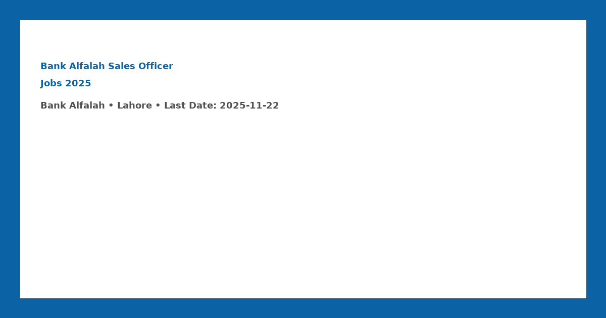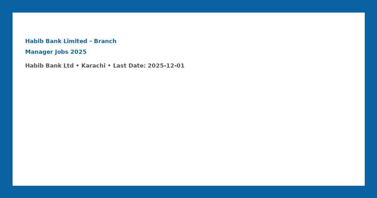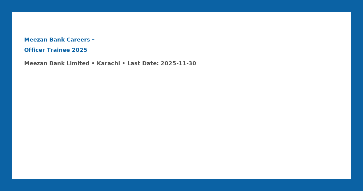 Meezan Bank Careers – Officer Trainee 2025 — Meezan Bank Limited has announced vacancies based in Karachi. Interested candidates who meet the eligibility criteria are encouraged to apply online before 2025-11-30.